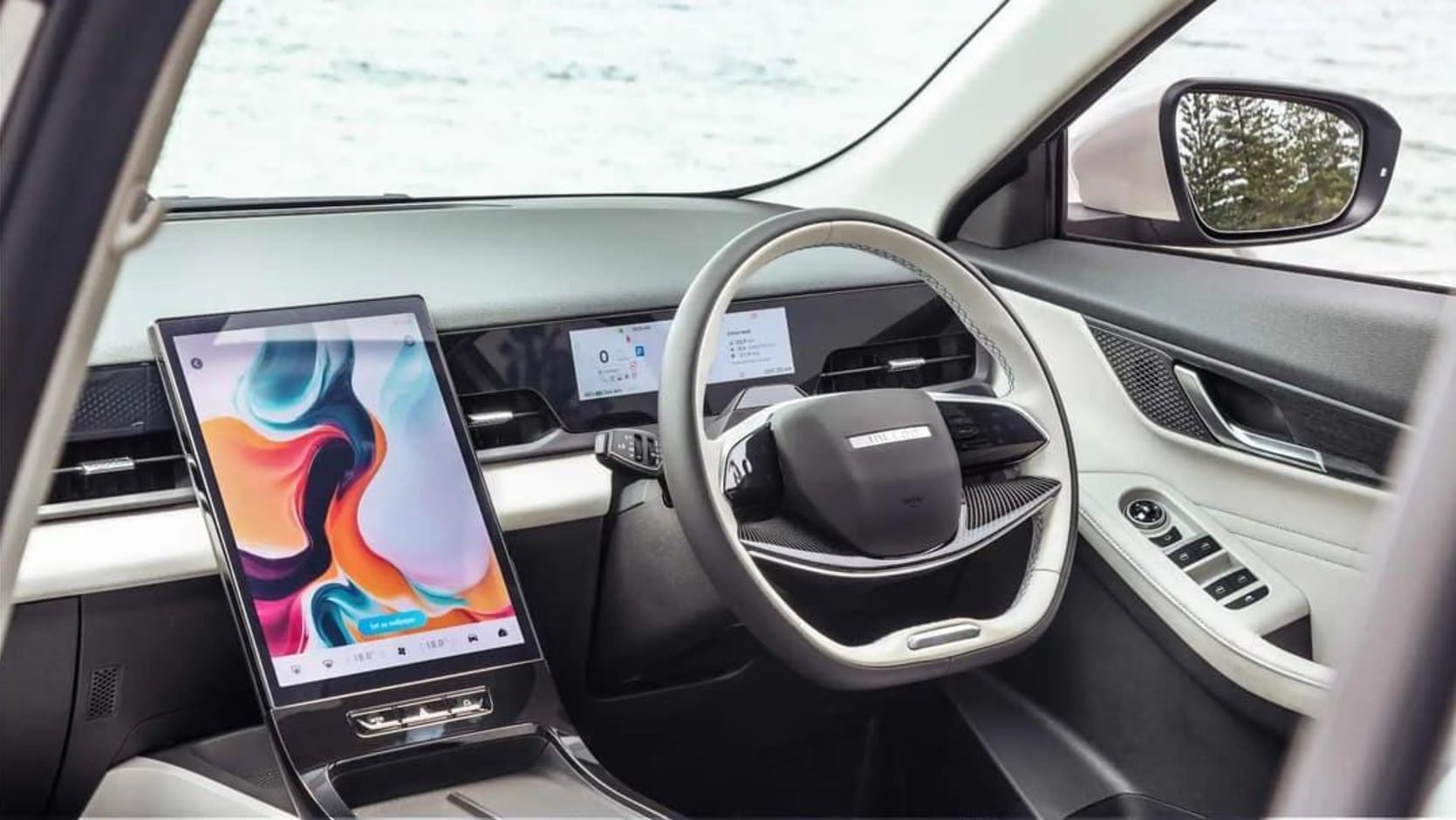 The 13.2-inch portrait touchscreen handles all key vehicle functions including climate control.